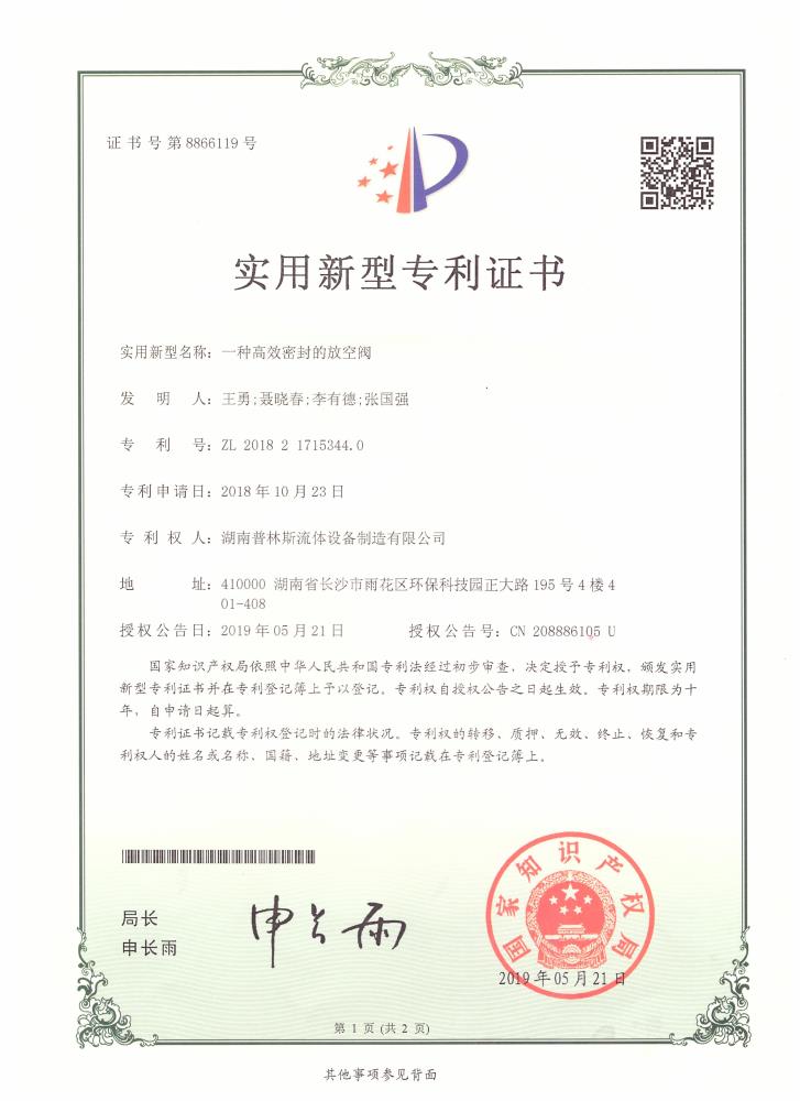 實(shí)用新型專利證書(shū)
